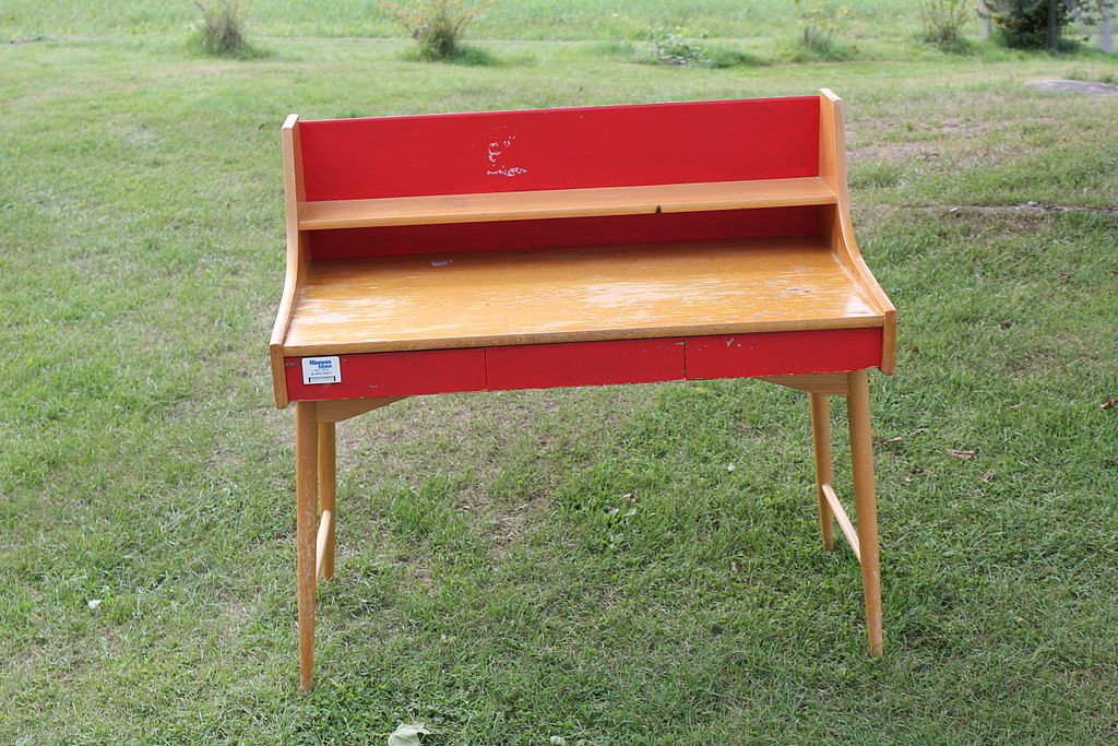 One of my desks is really just a lap desk. Claus gave it to me when he left for Berlin last year, and I suppose this thing is not really a desk. It’s a tiny beanbag with a piece of wood stuck on it. But it does the job. I’m using right now, in fact. Yes, I think it counts as a desk, so let’s call this beanbag thing from a man who broke my heart Desk No. 1.*